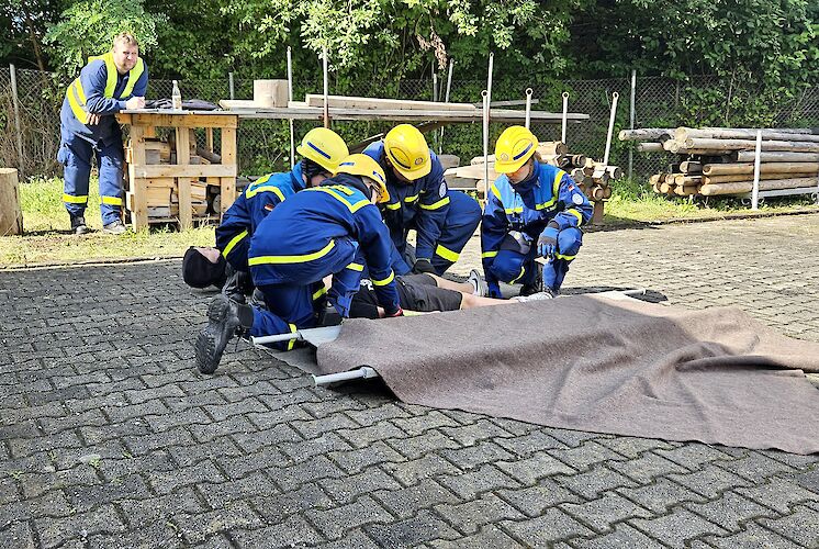 Bei der Teamaufgabe war eine verletzte Person zu versorgen, auf eine Trage aufzubinden und gemeinsam ein Hindernisparcours zu absolvieren. Beide meisterten die gestellten Aufgaben mit Bravour und wir gratulieren unseren beiden Junghelfern herzlich.