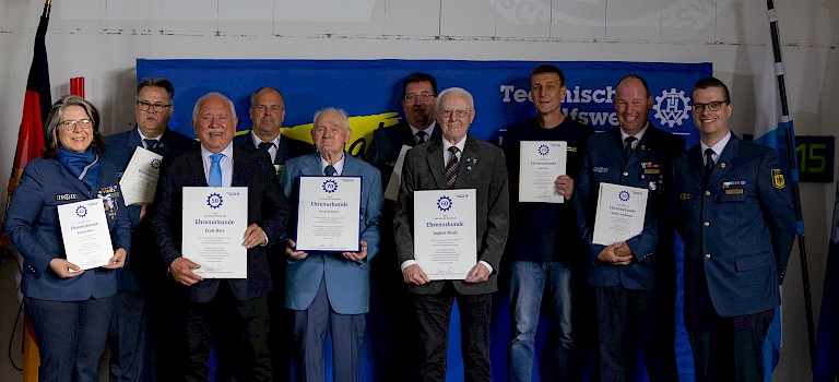 von den Einsatzkräften geleistet wurden, betonte Simon Lichtinghagen in seiner Rede. Die Anerkennung galt nicht nur ihrer Leistung, sondern auch ihrer Einsatzbereitschaft und ihrem Durchhaltevermögen. Jan Mannigel, Sachbearbeiter Einsatz der THW Regionalstelle Karlstadt überreichte die Ehrung für ihre langjährige Treue zum THW und ihr Engagement an folgende THW- Helferinnen und Helfer:
